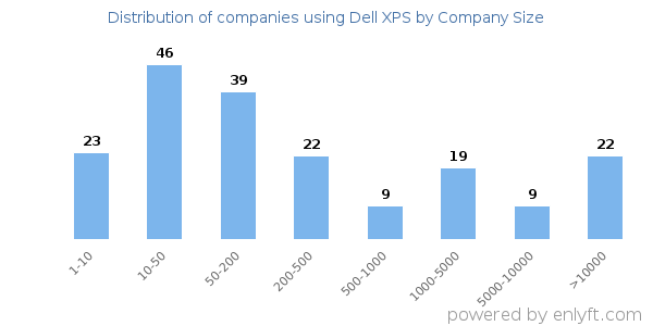 We have data on 196 companies that use Dell XPS. The companies using Dell XPS are most often found in United States and in the Information Technology and Services industry. Dell XPS is most often used by companies with 10-50 employees and 1M-10M dollars in revenue. Our data for Dell XPS usage goes back as far as 2 years and 8 months.