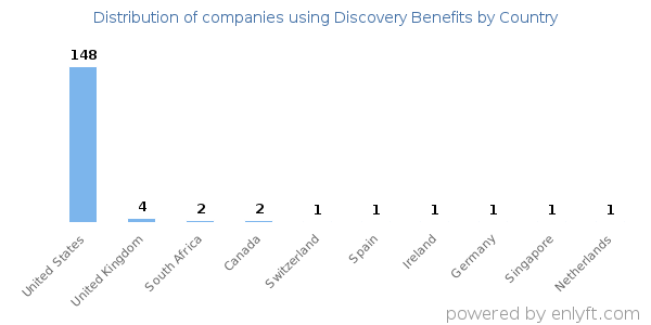 We have data on 170 companies that use Discovery Benefits. The companies using Discovery Benefits are most often found in United States and in the Computer Software industry. Discovery Benefits is most often used by companies with 1000-5000 employees and >1000M dollars in revenue. Our data for Discovery Benefits usage goes back as far as 6 years and 3 months.