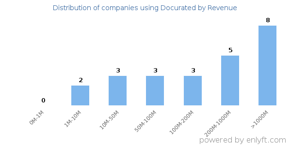 We have data on 25 companies that use Docurated. The companies using Docurated are most often found in United States and in the Computer Software industry. Docurated is most often used by companies with >10000 employees and >1000M dollars in revenue. Our data for Docurated usage goes back as far as 8 years and 6 months.