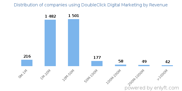 Of all the customers that are using DoubleClick Digital Marketing, a majority (86%) are small (<$50M), 0% are large (>$1000M) and 6% are medium-sized.