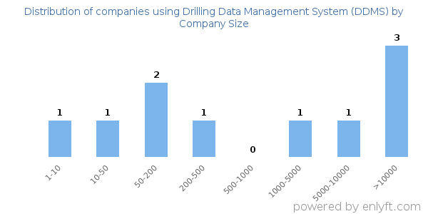We have data on 10 companies that use Drilling Data Management System (DDMS). The companies using Drilling Data Management System (DDMS) are most often found in United States and in the Oil & Energy industry. Drilling Data Management System (DDMS) is most often used by companies with >10000 employees and >1000M dollars in revenue. Our data for Drilling Data Management System (DDMS) usage goes back as far as 8 years and 2 months.