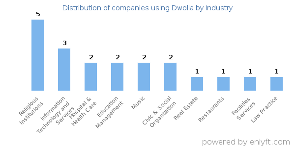 We have data on 45 companies that use Dwolla. The companies using Dwolla are most often found in United States and in the Religious Institutions industry. Dwolla is most often used by companies with 1-10 employees and 1M-10M dollars in revenue. Our data for Dwolla usage goes back as far as 9 years.