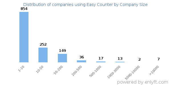 We have data on 2,053 companies that use Easy Counter. Easy Counter is most often used by companies with 1-10 employees and 1M-10M dollars in revenue. Our data for Easy Counter usage goes back as far as 5 years and 2 months.