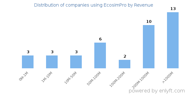 Of all the customers that are using EcosimPro, a majority (52%) are large (>$1000M), 15% are small (<$50M) and 13% are medium-sized.