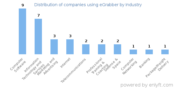 We have data on 49 companies that use eGrabber. The companies using eGrabber are most often found in United States and in the Computer Software industry. eGrabber is most often used by companies with >10000 employees and >1000M dollars in revenue. Our data for eGrabber usage goes back as far as 8 years and 5 months.