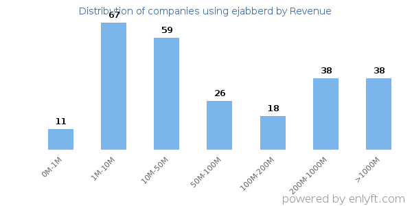Of all the customers that are using ejabberd, 47% are small (<$50M), 17% are medium-sized and 28% are large (>$1000M).
