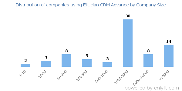 Of all the customers that are using Ellucian CRM Advance, a majority (67%) are large (>1000 employees), 6% are small (<50 employees) and 19% are medium-sized.