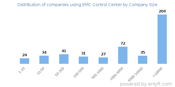 We have data on 476 companies that use EMC Control Center. The companies using EMC Control Center are most often found in United States and in the Information Technology and Services industry. EMC Control Center is most often used by companies with >10000 employees and >1000M dollars in revenue. Our data for EMC Control Center usage goes back as far as 10 years and 2 months.