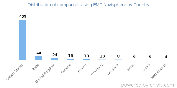 71% of EMC Navisphere customers are in United States and 7% are in India.