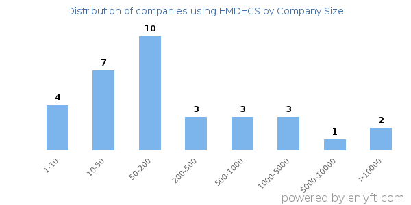 We have data on 34 companies that use EMDECS. The companies using EMDECS are most often found in United States and in the Transportation/Trucking/Railroad industry. EMDECS is most often used by companies with 50-200 employees and 1M-10M dollars in revenue. Our data for EMDECS usage goes back as far as 8 years and 4 months.