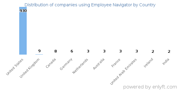 We have data on 991 companies that use Employee Navigator. The companies using Employee Navigator are most often found in United States and in the Insurance industry. Employee Navigator is most often used by companies with 50-200 employees and 10M-50M dollars in revenue. Our data for Employee Navigator usage goes back as far as 8 years and 6 months.
