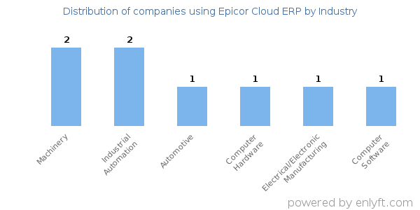 We have data on 8 companies that use Epicor Cloud ERP. The companies using Epicor Cloud ERP are most often found in United States and in the Machinery industry. Epicor Cloud ERP is most often used by companies with 10-50 employees and 200M-1000M dollars in revenue. Our data for Epicor Cloud ERP usage goes back as far as 8 years and 4 months.