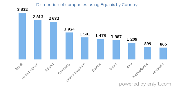 14% of Equinix customers are in Brazil, 11% are in United States, 11% are in Finland, 8% are in Germany, 6% are in United Kingdom and 6% are in France.