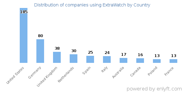 We have data on 750 companies that use ExtraWatch. ExtraWatch is most often used by companies with 1-10 employees and 1M-10M dollars in revenue. Our data for ExtraWatch usage goes back as far as 5 years and 2 months.