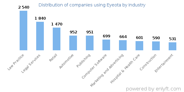 We have data on 28,863 companies that use Eyeota. The companies using Eyeota are most often found in United States and in the Law Practice industry. Eyeota is most often used by companies with 1-10 employees and 1M-10M dollars in revenue. Our data for Eyeota usage goes back as far as 6 years and 11 months.