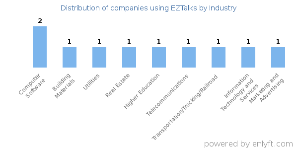 We have data on 10 companies that use EZTalks. The companies using EZTalks are most often found in United States and in the Computer Software industry. EZTalks is most often used by companies with 1000-5000 employees and 200M-1000M dollars in revenue. Our data for EZTalks usage goes back as far as 8 years and 5 months.
