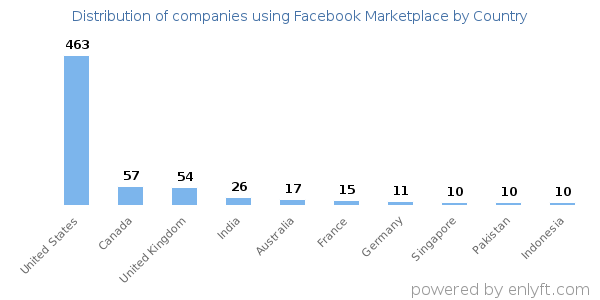We have data on 787 companies that use Facebook Marketplace. The companies using Facebook Marketplace are most often found in United States and in the Real Estate industry. Facebook Marketplace is most often used by companies with 10-50 employees and 1M-10M dollars in revenue. Our data for Facebook Marketplace usage goes back as far as 3 years and 4 months.