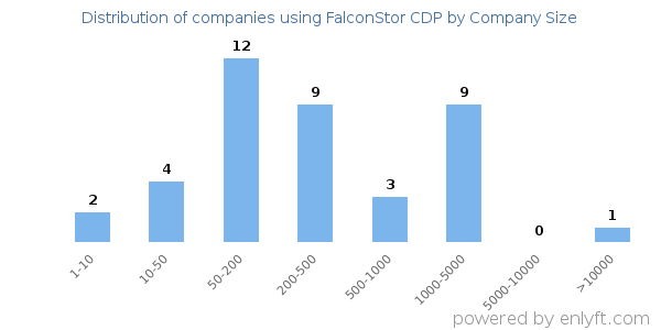 We have data on 41 companies that use FalconStor CDP. The companies using FalconStor CDP are most often found in United States and in the Information Technology and Services industry. FalconStor CDP is most often used by companies with 50-200 employees and 10M-50M dollars in revenue. Our data for FalconStor CDP usage goes back as far as 9 years and 2 months.