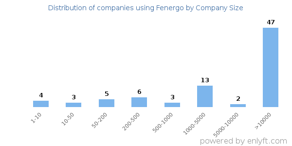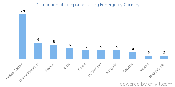We have data on 83 companies that use Fenergo. The companies using Fenergo are most often found in United States and in the Information Technology and Services industry. Fenergo is most often used by companies with >10000 employees and >1000M dollars in revenue. Our data for Fenergo usage goes back as far as 1 years and 7 months.