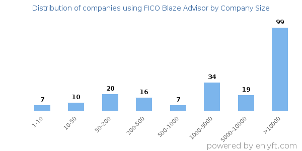 We have data on 214 companies that use FICO Blaze Advisor. The companies using FICO Blaze Advisor are most often found in United States and in the Financial Services industry. FICO Blaze Advisor is most often used by companies with >10000 employees and >1000M dollars in revenue. Our data for FICO Blaze Advisor usage goes back as far as 6 years and 1 months.
