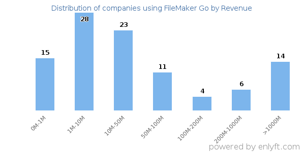 Of all the customers that are using FileMaker Go, a majority (61%) are small (<$50M), 18% are large (>$1000M) and 10% are medium-sized.