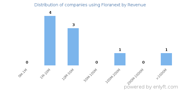 Of all the customers that are using Floranext, a majority (54%) are small (<$50M), 0% are large (>$1000M) and 0% are medium-sized.