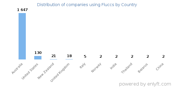 We have data on 2,121 companies that use Fluccs. The companies using Fluccs are most often found in Australia and in the Construction industry. Fluccs is most often used by companies with 1-10 employees and 1M-10M dollars in revenue. Our data for Fluccs usage goes back as far as 5 years and 2 months.