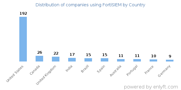 We have data on 449 companies that use FortiSIEM. The companies using FortiSIEM are most often found in United States and in the Information Technology and Services industry. FortiSIEM is most often used by companies with 50-200 employees and 10M-50M dollars in revenue. Our data for FortiSIEM usage goes back as far as 8 years and 4 months.