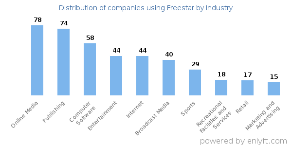Looking at Freestar customers by industry, we find that Online Media (8%), Publishing (7%) and Computer Software (6%) are the largest segments.