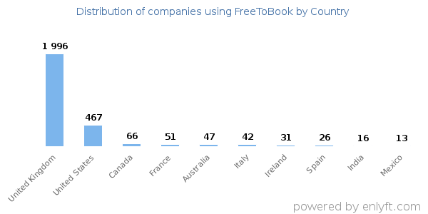 61% of FreeToBook customers are in United Kingdom and 14% are in United States.