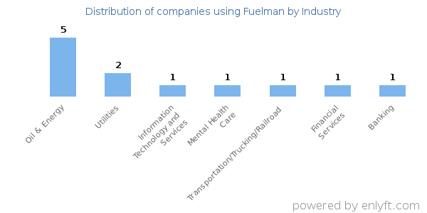 We have data on 12 companies that use Fuelman. The companies using Fuelman are most often found in United States and in the Oil & Energy industry. Fuelman is most often used by companies with 50-200 employees and 10M-50M dollars in revenue. Our data for Fuelman usage goes back as far as 2 years and 9 months.
