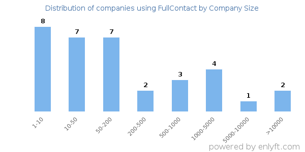 We have data on 35 companies that use FullContact. The companies using FullContact are most often found in United States and in the Computer Software industry. FullContact is most often used by companies with 1-10 employees and 1M-10M dollars in revenue. Our data for FullContact usage goes back as far as 8 years and 5 months.