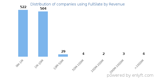 Of all the customers that are using FullSlate, a majority (83%) are small (<$50M), 0% are large (>$1000M) and 0% are medium-sized.