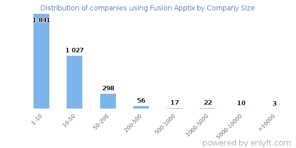 Of all the customers that are using Fusion Apptix, a majority (88%) are small (<$50M), 0% are large (>$1000M) and 0% are medium-sized.