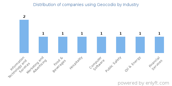 We have data on 10 companies that use Geocodio. The companies using Geocodio are most often found in United States and in the Information Technology and Services industry. Geocodio is most often used by companies with 50-200 employees and 200M-1000M dollars in revenue. Our data for Geocodio usage goes back as far as 4 years.