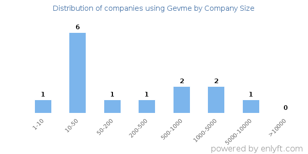 We have data on 14 companies that use Gevme. The companies using Gevme are most often found in Singapore and in the Professional Training & Coaching industry. Gevme is most often used by companies with 10-50 employees and 1M-10M dollars in revenue. Our data for Gevme usage goes back as far as 2 years and 7 months.
