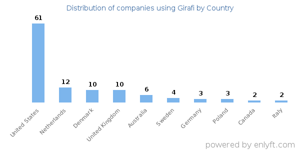 47% of Girafi customers are in United States, 9% are in Netherlands, 7% are in Denmark and 7% are in United Kingdom.