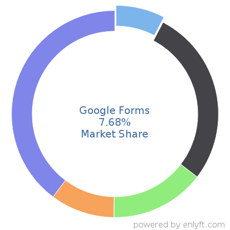 We use the best indexing techniques combined with advanced data science to monitor the market share of over 15,000 technology products, including Survey Research. By scanning billions of public documents, we are able to collect deep insights on every company, with over 100 data fields per company at an average. In the Survey Research category, Google Forms has a market share of about 7.7%. Other major and competing products in this category include: