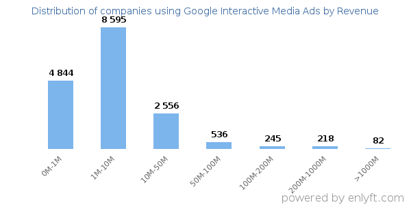 Of all the customers that are using Google Interactive Media Ads, a majority (73%) are small (<$50M), 7% are large (>$1000M) and 15% are medium-sized.