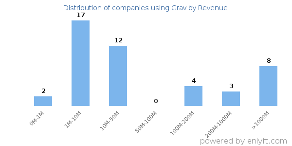 Of all the customers that are using Grav, a majority (58%) are small (<$50M), 15% are large (>$1000M) and 7% are medium-sized.