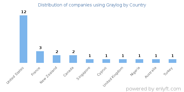We have data on 26 companies that use Graylog. The companies using Graylog are most often found in United States and in the Computer Software industry. Graylog is most often used by companies with 1000-5000 employees and 200M-1000M dollars in revenue. Our data for Graylog usage goes back as far as 3 years and 11 months.