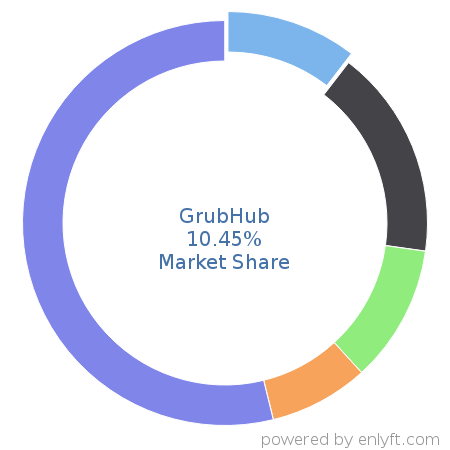 We use the best indexing techniques combined with advanced data science to monitor the market share of over 15,000 technology products, including Retail. By scanning billions of public documents, we are able to collect deep insights on every company, with over 100 data fields per company at an average. In the Retail category, GrubHub has a market share of about 10.4%. Other major and competing products in this category include: