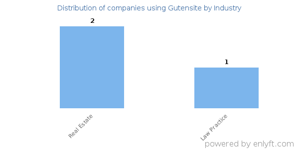 Looking at Gutensite customers by industry, we find that Real Estate (50%) and Law Practice (17%) are the largest segments.