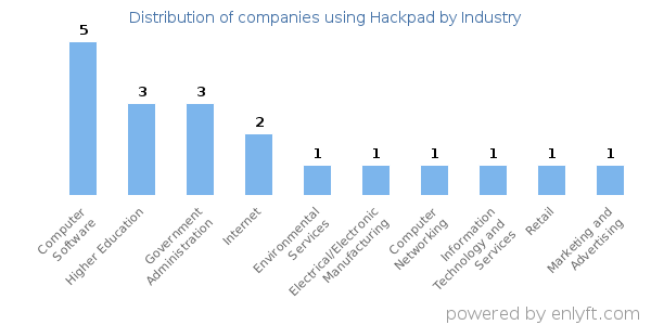 Looking at Hackpad customers by industry, we find that Computer Software (22%), Higher Education (11%), Government Administration (11%) and Internet (6%) are the largest segments.