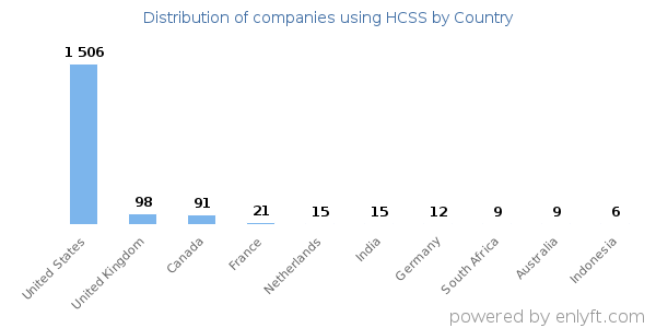 We have data on 1,880 companies that use HCSS. The companies using HCSS are most often found in United States and in the Construction industry. HCSS is most often used by companies with 50-200 employees and 10M-50M dollars in revenue. Our data for HCSS usage goes back as far as 10 years and 2 months.