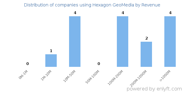 We have data on 17 companies that use Hexagon GeoMedia. The companies using Hexagon GeoMedia are most often found in Germany and in the Computer Software industry. Hexagon GeoMedia is most often used by companies with 50-200 employees and >1000M dollars in revenue. Our data for Hexagon GeoMedia usage goes back as far as 3 years and 5 months.