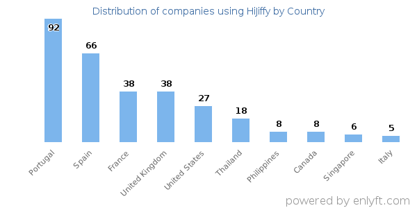 23% of HiJiffy customers are in Portugal, 16% are in Spain, 9% are in France, 9% are in United Kingdom and 7% are in United States.