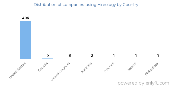 We have data on 428 companies that use Hireology. The companies using Hireology are most often found in United States and in the Automotive industry. Hireology is most often used by companies with 50-200 employees and 10M-50M dollars in revenue. Our data for Hireology usage goes back as far as 8 years and 3 months.