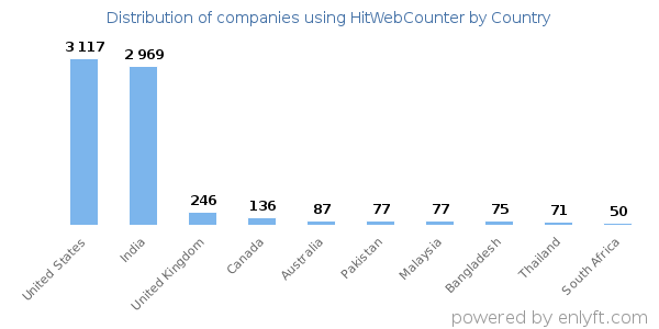 32% of HitWebCounter customers are in United States and 31% are in India.
