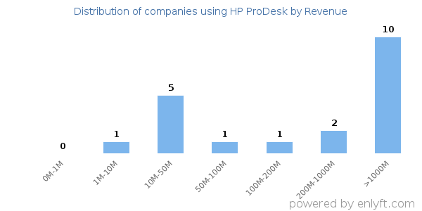 We have data on 20 companies that use HP ProDesk. The companies using HP ProDesk are most often found in United States and in the Information Technology and Services industry. HP ProDesk is most often used by companies with >10000 employees and >1000M dollars in revenue. Our data for HP ProDesk usage goes back as far as 2 years and 8 months.